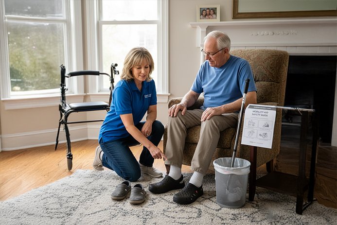 - Proper footwear and mobility aid guidance
